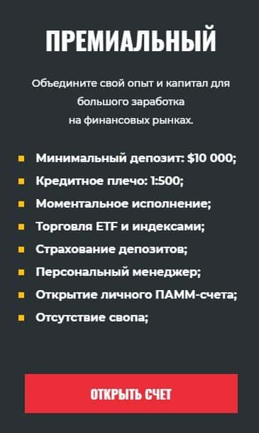 "Премиальный" аккаунт предполагает вклад пользователя в размере 10000 долларов. Ему предоставляют целый список преимуществ, чтобы вкладчики потеряли бдительность.