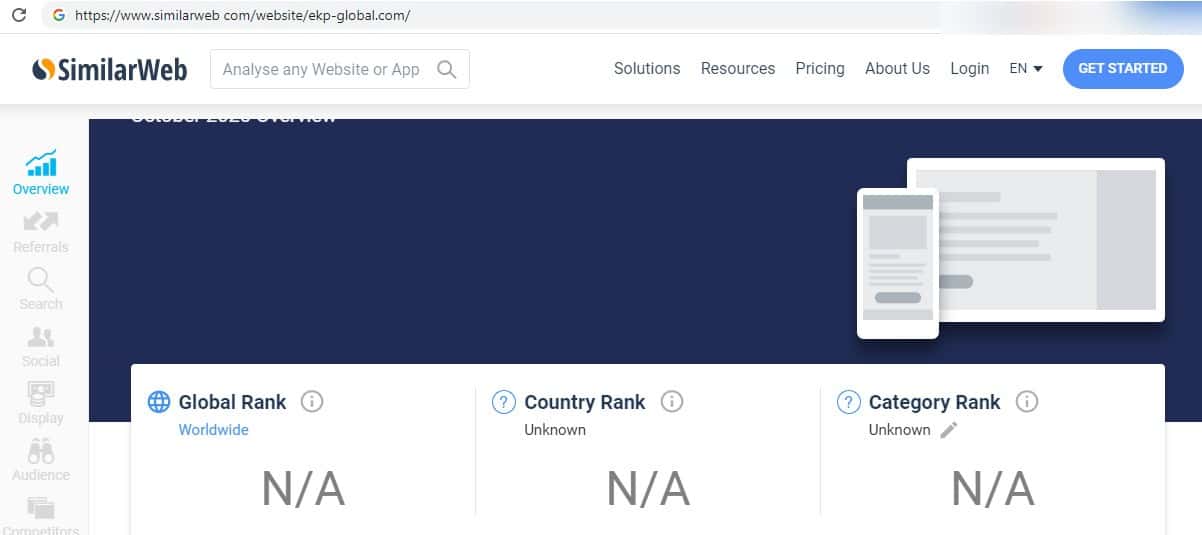 Интернет-портал similarweb com не имеет никакой точной информации о страничке аферной брокерской конторы EKP Global. Лучше не связываться с подобными шарлатанами.