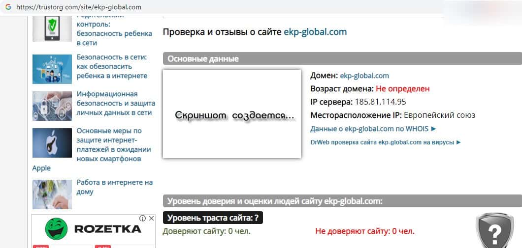 Согласно сведениям с уважаемого интернет-сервиса трусторг кам, возраст домена аферного брокера EKP Globalне определен с расположением в Европейском Союзе.