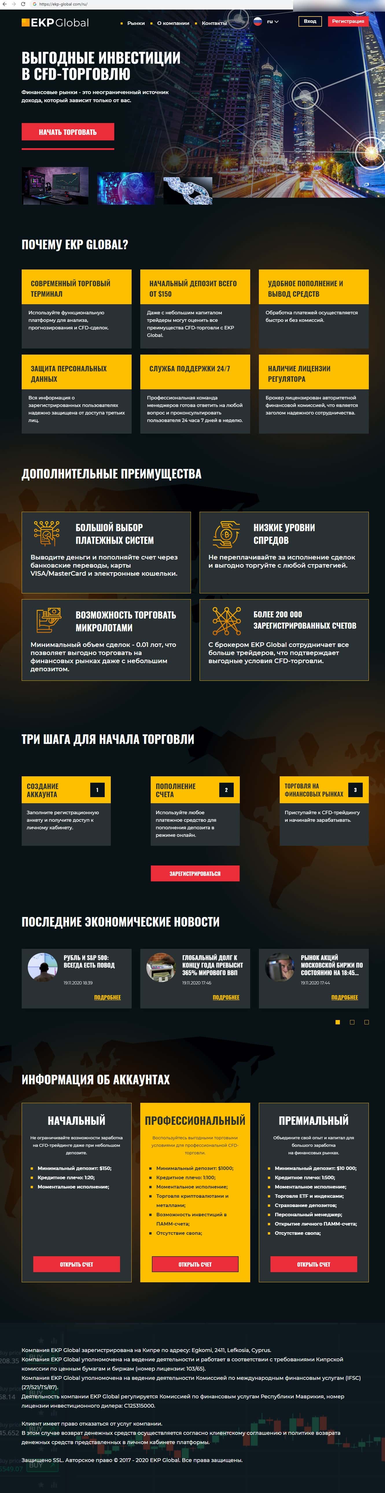 - Главная страница шарлатанского биржевого брокера EKP Global