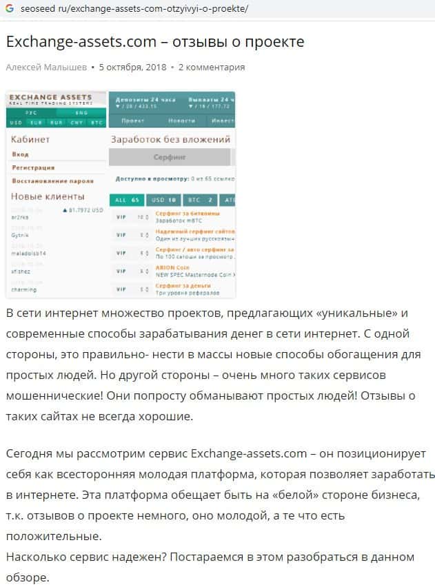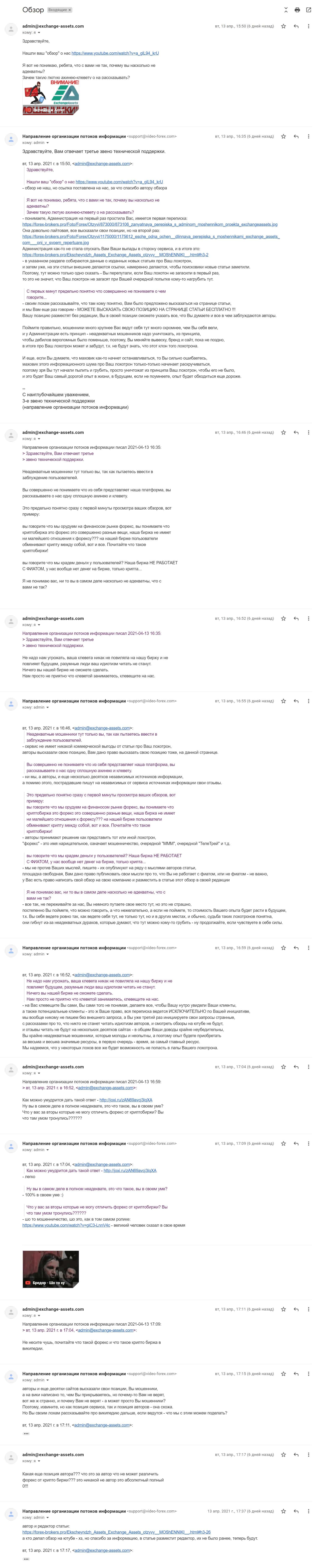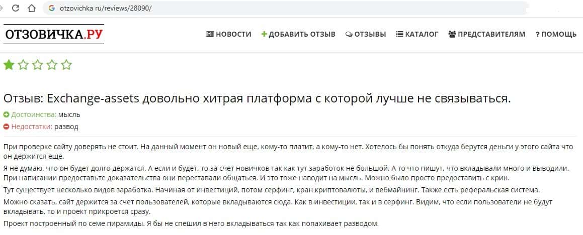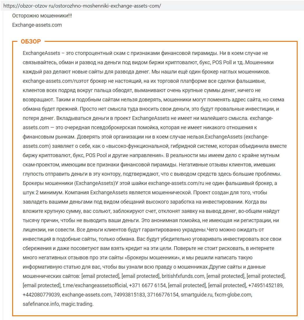 Очередной обзор с доказательствами того, что Exchange-assets является мошеннической организацией представлен ниже.