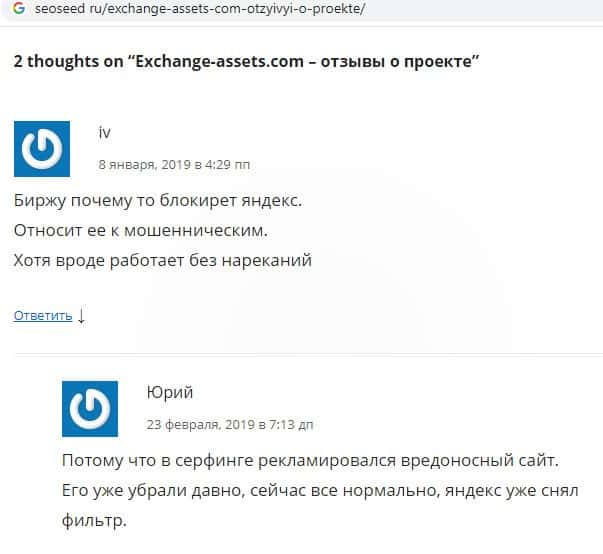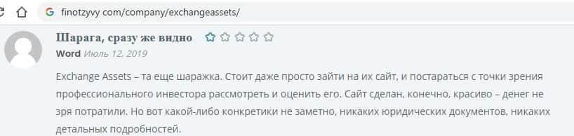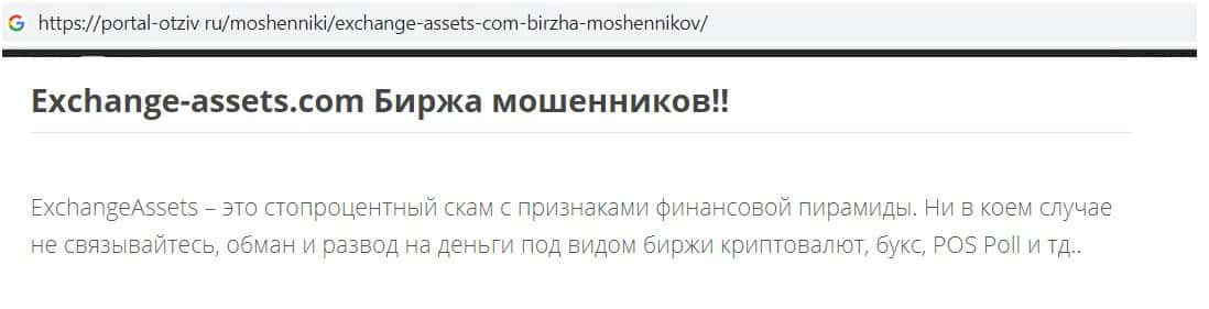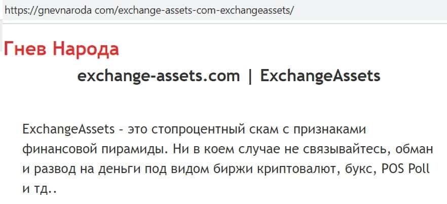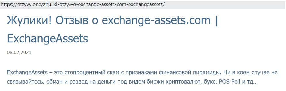 - Отзывы о мошенниках Эксчейндж Ассетс на разных ресурсах