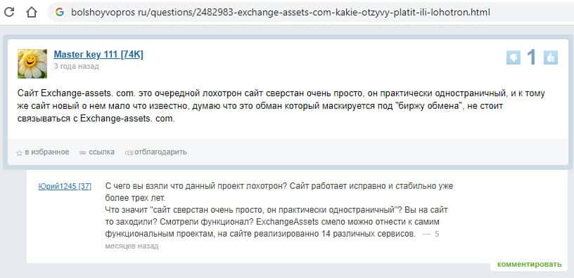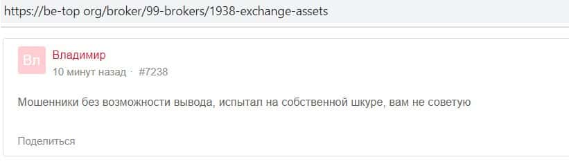 - Мнение о мошенниках Эксчейндж Ассетс на разных сайтах