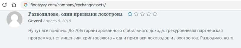 Отзывы о мошенниках Эксчейндж Ассетс на разных ресурсах