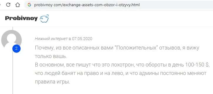 Пользователи пишут, что проект Эксчейндж Ассетс уже давно соскамился, а его основатели давно скрылись и сейчас там заработать практически нереально.