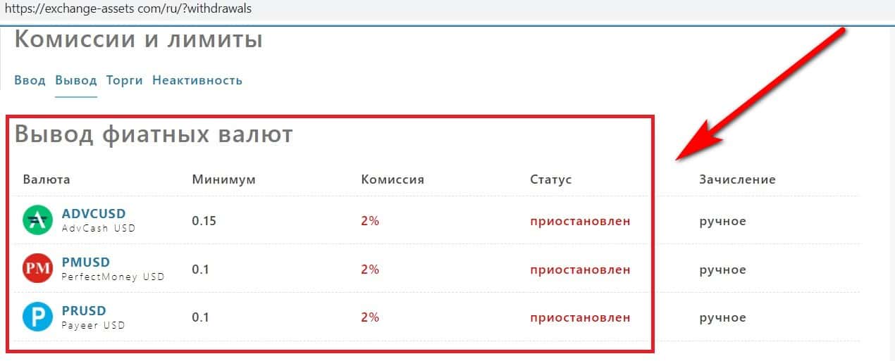 - Вывод фиатных денег на скам-платформе Exchange Assets - недоступен