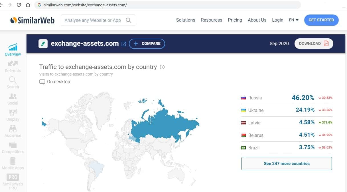 Больше всего аудитории на сайт exchange-assets com приходит из РФ. Именно оттуда они обманывают самое большое количество людей.