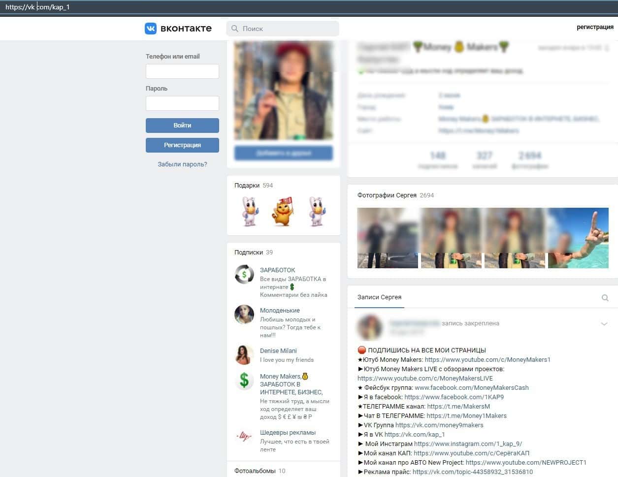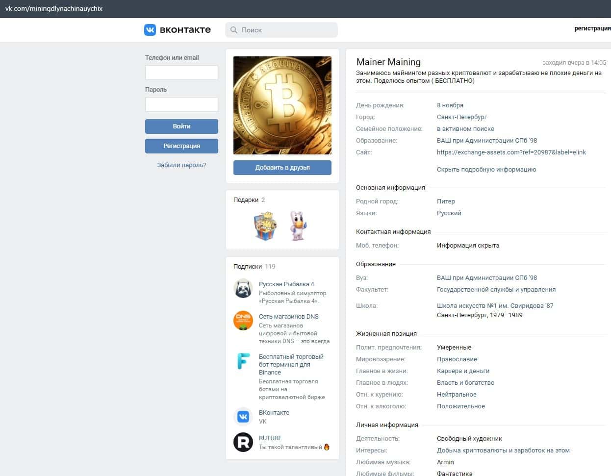 На следующем скриншоте вы можете увидеть страничку из социальных сетей ВКонтакте еще одного человека, который связан с мошенническим крипто-проектами.