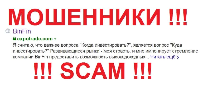 Жулики BinFin позиционируют свою организацию как лидера международного рынка брокерских услуг. Аферисты Экспо Трейд врут пользователям о безупречном качестве предоставления инвестиционных и брокерских услуг. Впрочем точно так же поступает большинство подобных скам-контор.