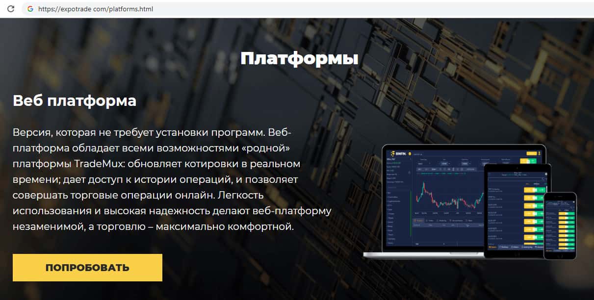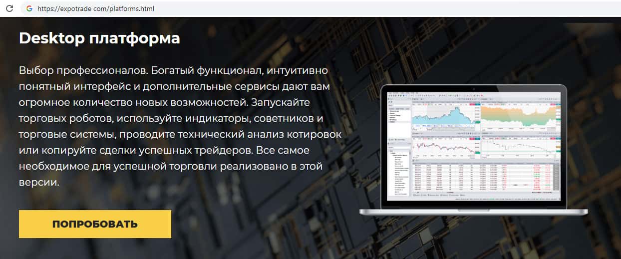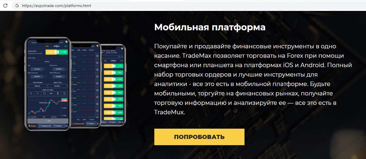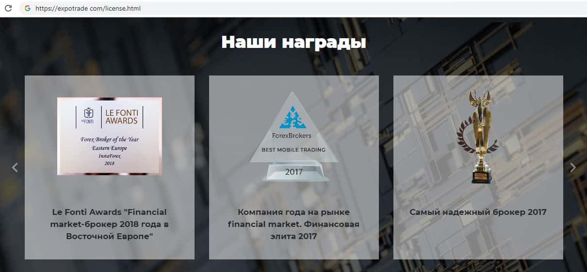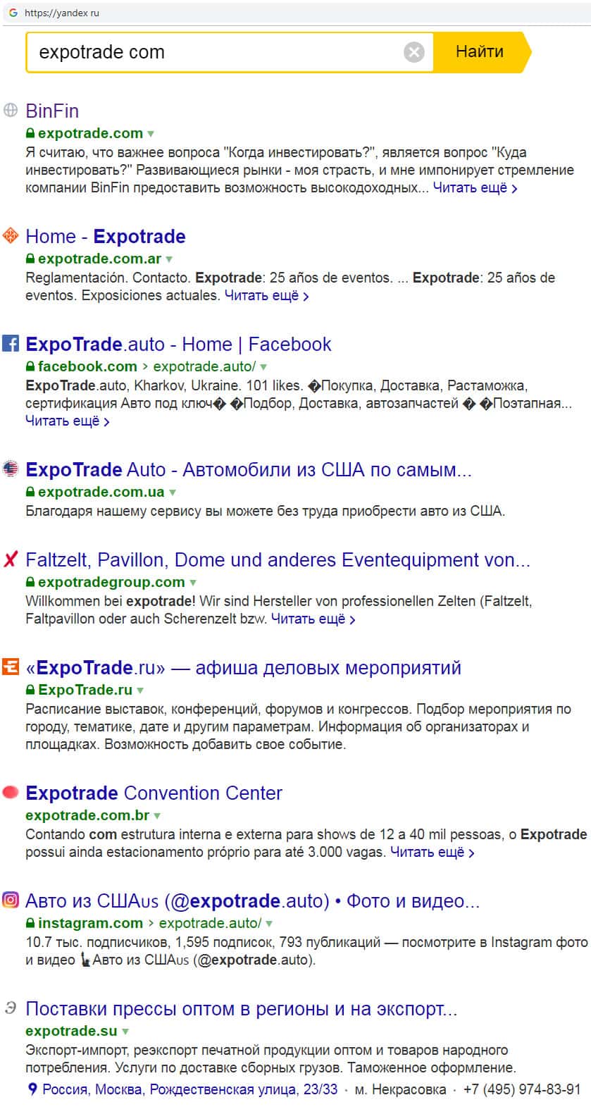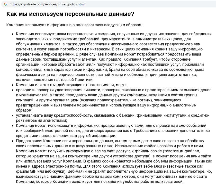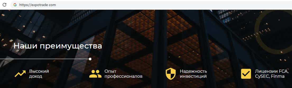 - Мошенники создают иллюзию надежности компании ExpoTrade