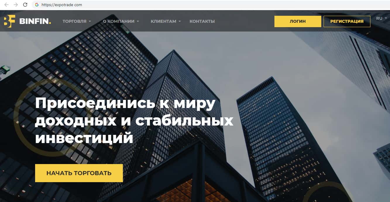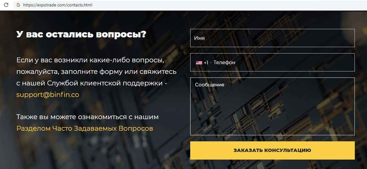 - Аферисты Bin Fin используют другой мошеннический онлайн-сервис под названием ExpoTrade