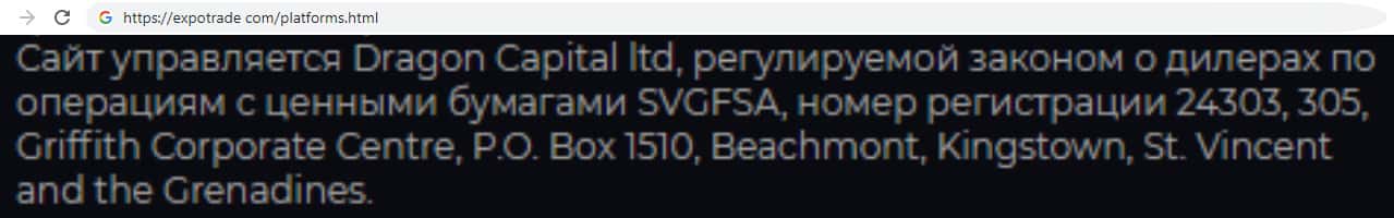 - Оффшорное место регистрации скам-брокера Экспо Трейд
