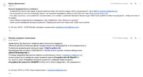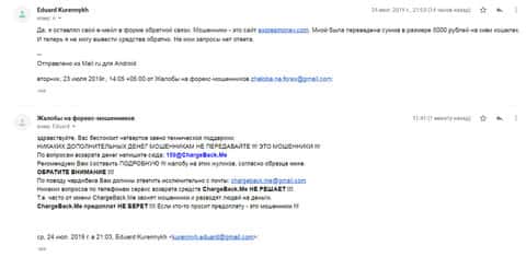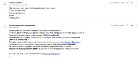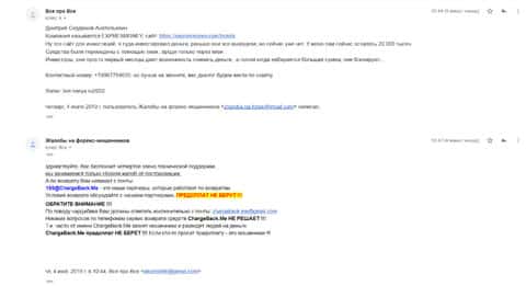 Далее предлагаем ознакомится с очередной жалобой на жульническую организацию Forex Экспрес Мани, которая опрокинули еще одного пользователя всемирной сети. Для того, чтобы попытаться вернуть потерянные денежные средства нужно обращаться в специальный веб-сервис ChargeBack.Me