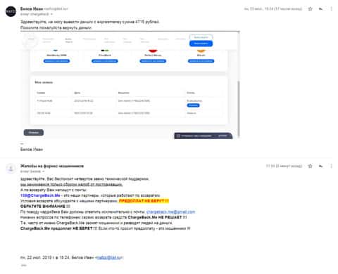 Вся схема развода началась с интернет-сайта, которая завлек зарегистрироваться и открыть счет в лохотроне ExpresMoney. Мошенники настолько задурили мозги человеку, что он отдал все свои сбережения. Теперь, чтобы вывести определенную сумму денег, ему приходится обращаться за помощью в службу ChargeBack.Me