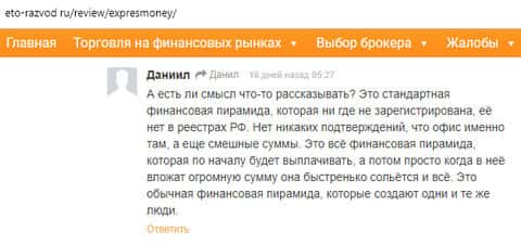 - Еще информация о мошенничестве в ExpresMoney