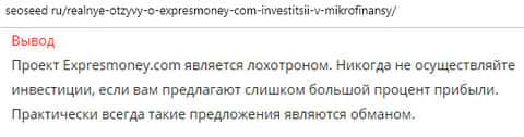Интернет-ресурс seoseed ru не рекомендует контору Экспресс Мани