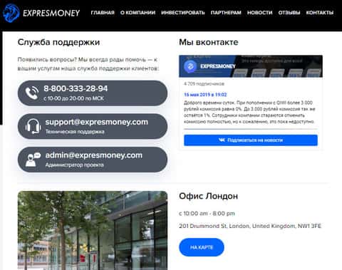 - Контактная информация хайп-лохотрона Экспресс Мани