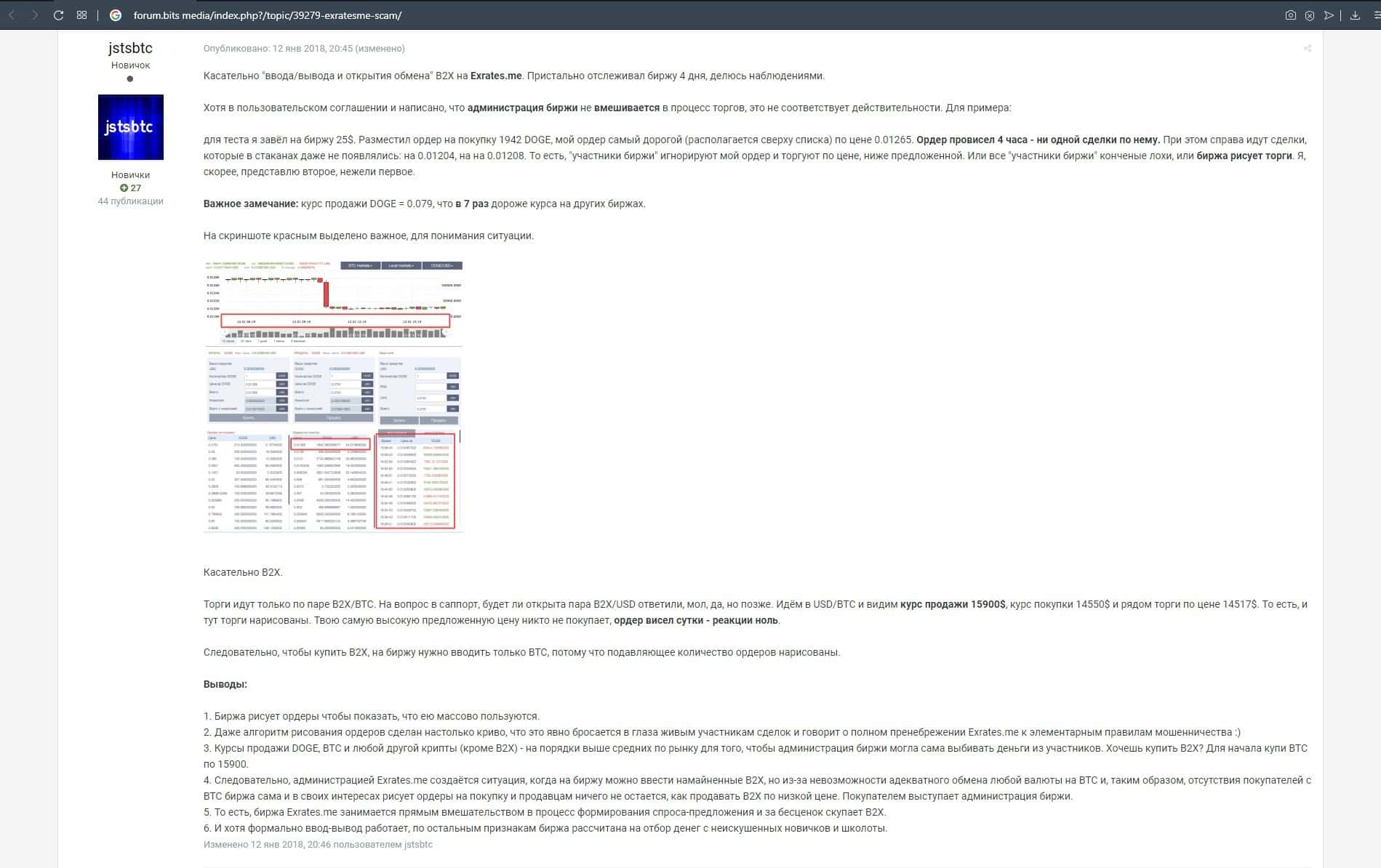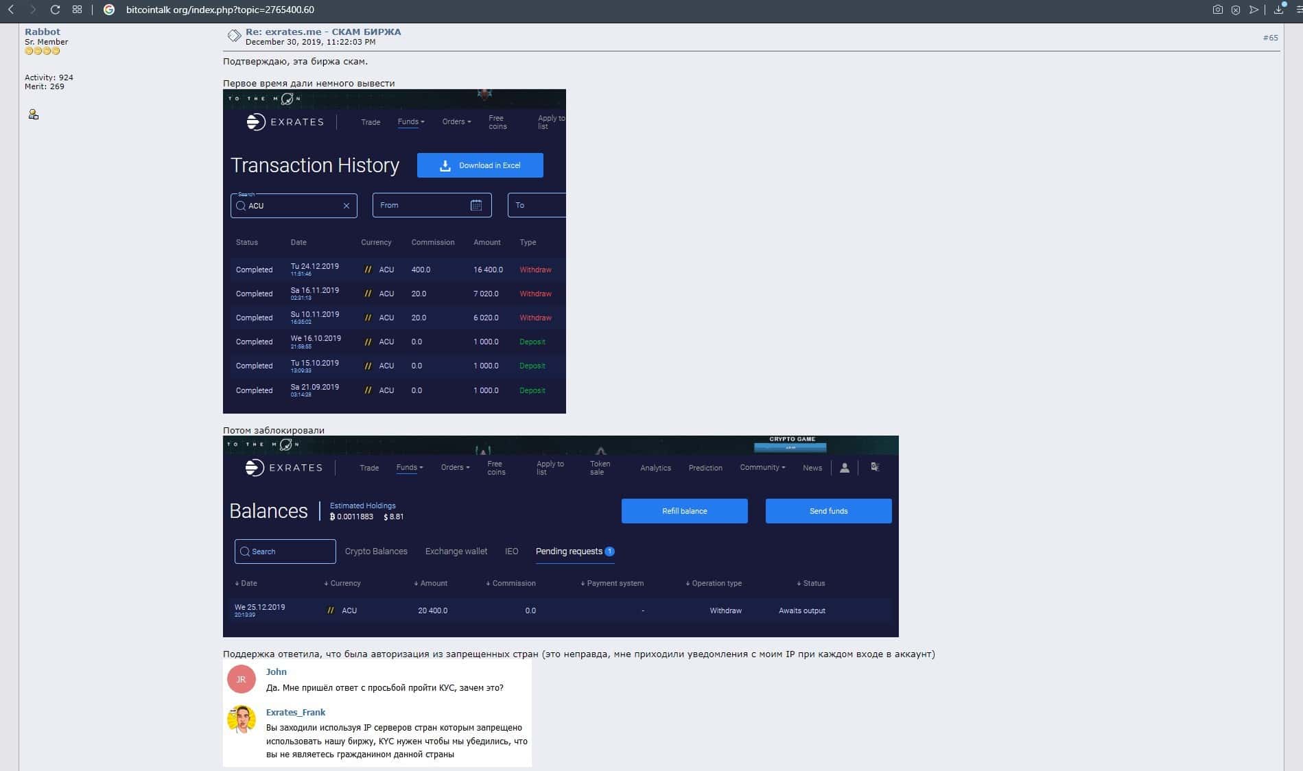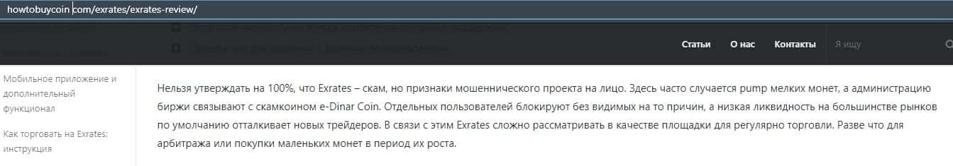 В следующей публикации указывается, что криптовалютная биржа Exrates имеет все признаки мошенничества, так как здесь то деньги пропадают, то вообще не выводят.