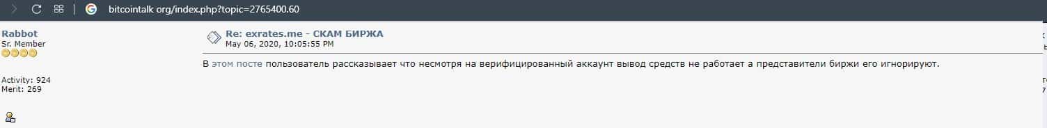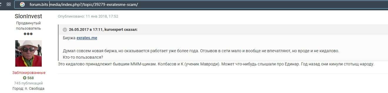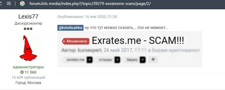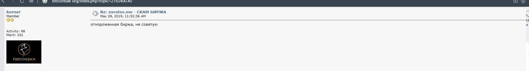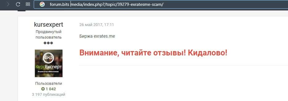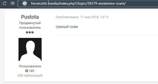 Автор сообщения на форуме четко дал понять, что контора Эксрейтс - это скам, так как об этом пишут уже многие ресурсы, включая и специализированные порталы.