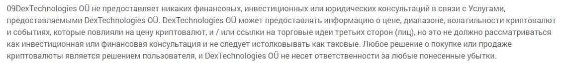 В криптовалютной недобирже Exrates также заявляют, что они не несут ответственности за те рекомендации, которые они дают в аналитических обзорах, особенно если они убыточные.