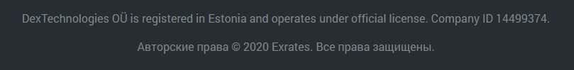 Как было указано на официальном сайте конторы Эксрейтс, данная недобиржа зарегистрирована на территории Эстонии, что не так и далеко от столицы России.