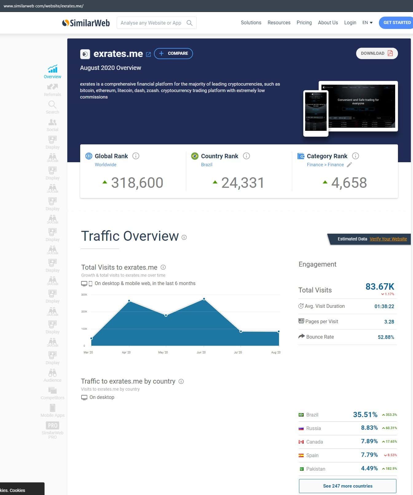 Если рассмотреть источники трафика на ресурс конторы exrates me, то сразу понятно, что они в основном разводят население России, и мы бы не советовали заходить к ним на сайт.
