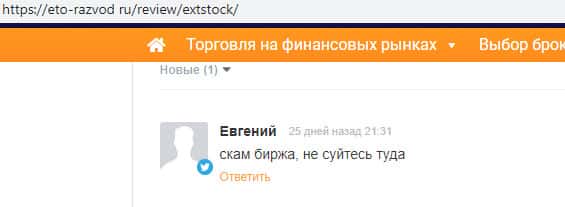 - Еще один отзыв о мошенниках Экст Сток с веб-портала eto-razvod ru