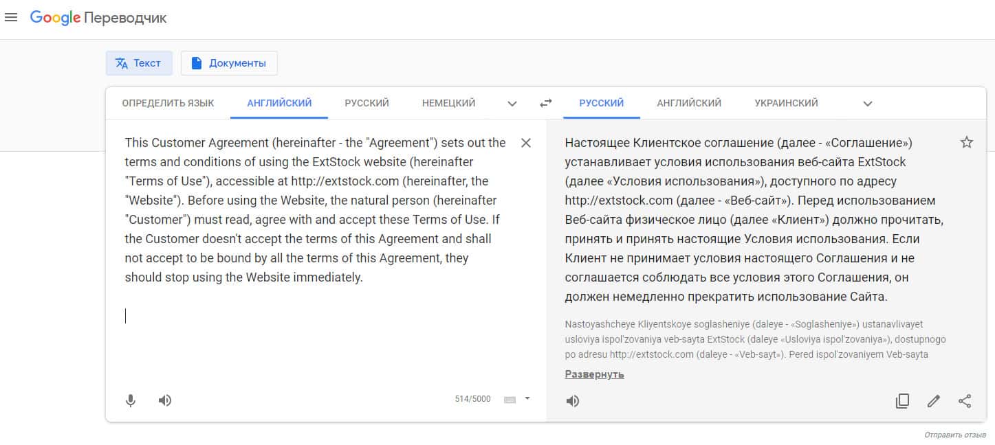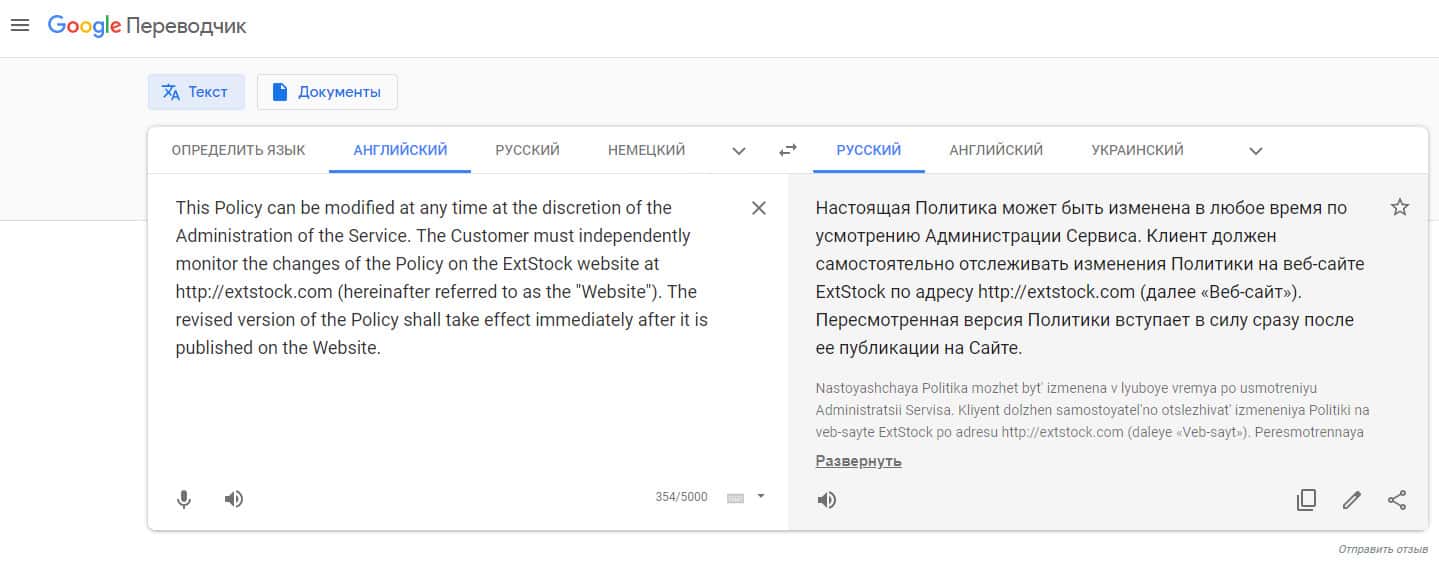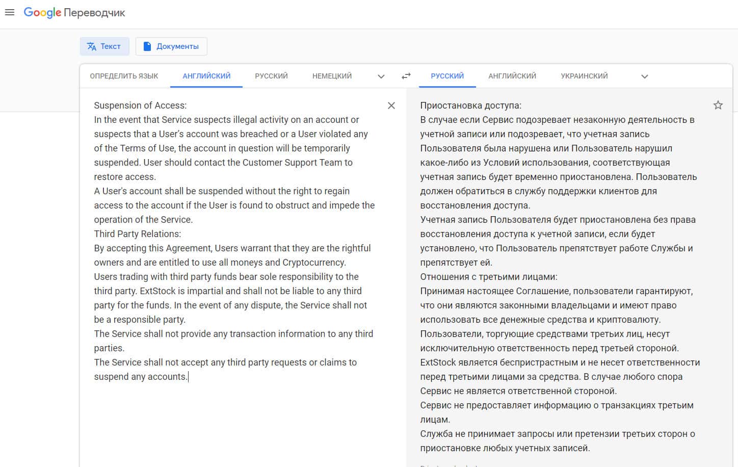 - Перечень условий клиентского соглашения аферистов ExtStock