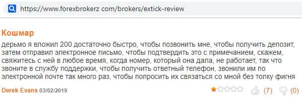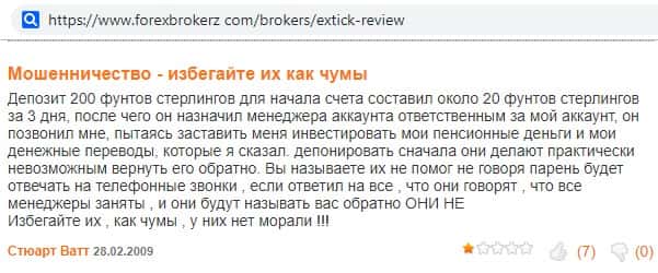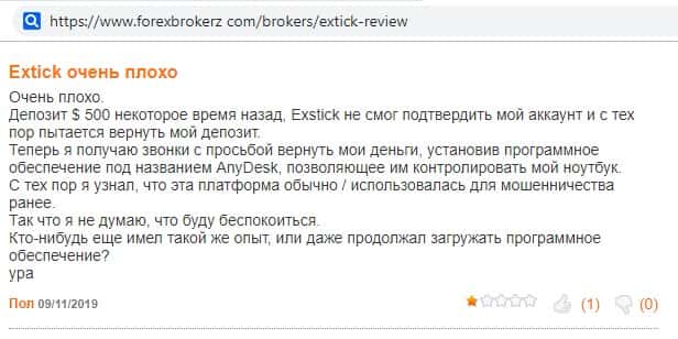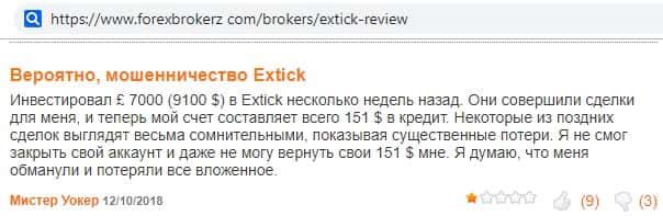 - Обманутый клиент компании ЭксТик дает низкую оценку работе этого брокера