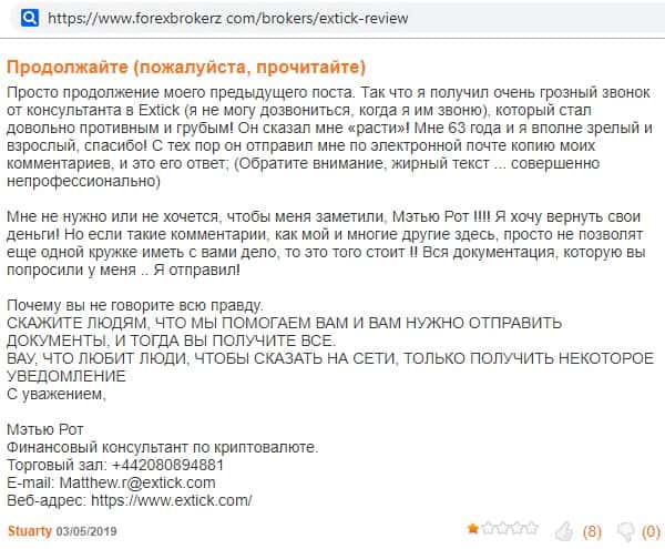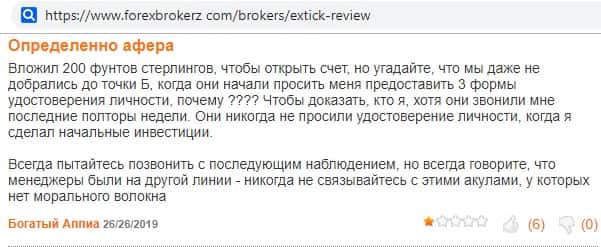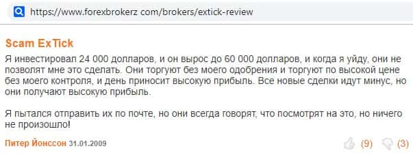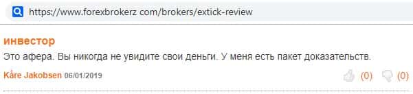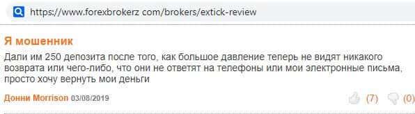 - В брокерской конторе ExTick работают обнаглевшие мошенники, - отзыв клиента