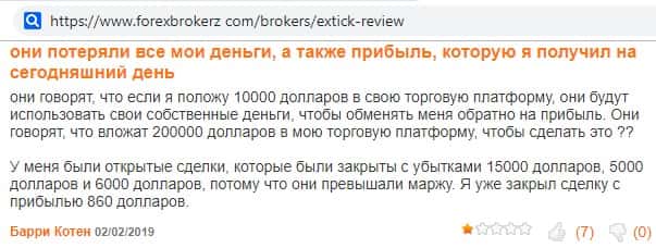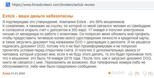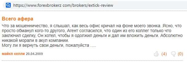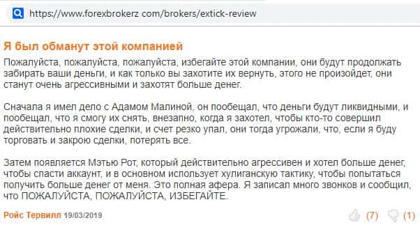 - Очередная жалоба на брокерскую компанию Экстик на веб-портале forexbrokerz com
