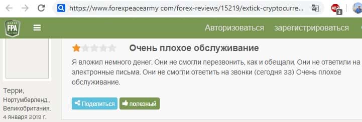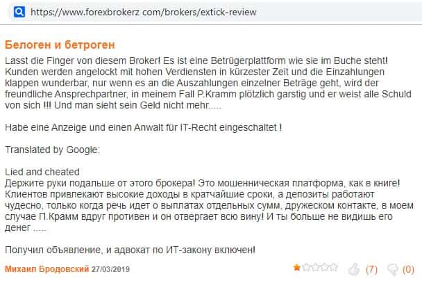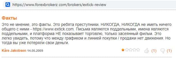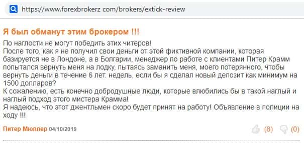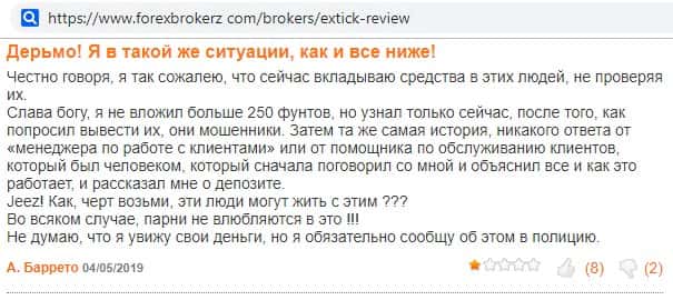 Очередная жалоба на брокерскую компанию Экстик на веб-портале forexbrokerz com
