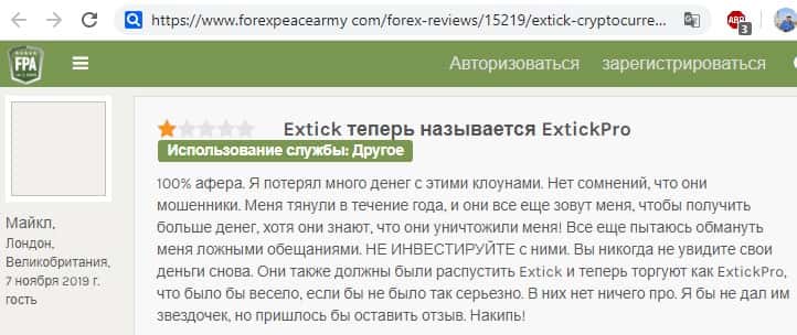 Клиент компании ExTick потерял 500 долларов и еще кое-что