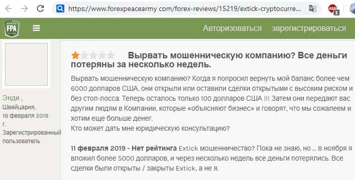 - Аферисты из компании Экстик развели швейцарского трейдера более чем на 5 тысяч долларов