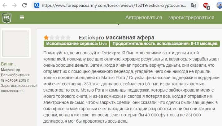 - Мошенники из компании ExTickPro развели британского трейдера на крупную сумму денег