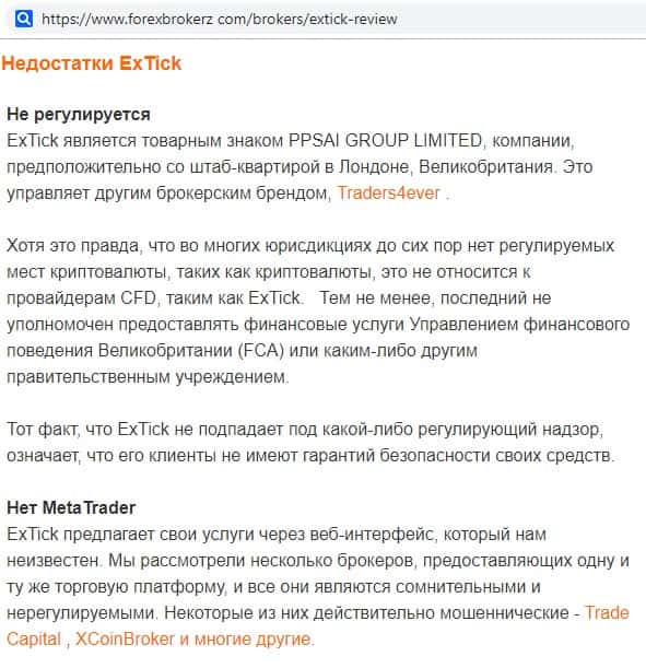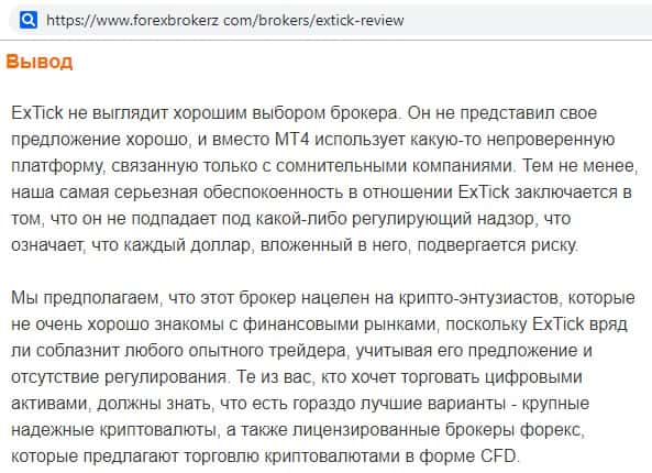 - Источники и ссылки, которые использовались при написании статьи о брокерской компании Extick