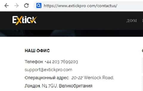 Мошенники из брокерской конторы Extick выложили на своем официальном сайте свой адрес, электронную почту и телефон, хотя, учитывая нерегулируемость этого брокера, эти контактные данные вызывают некоторые сомнения: