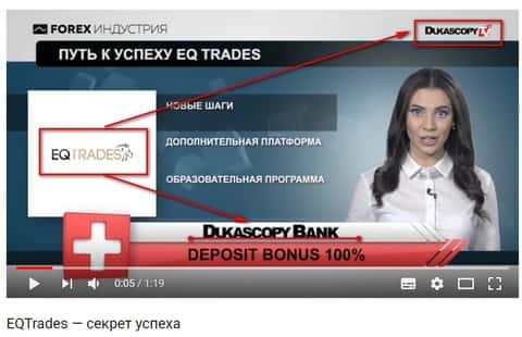 Заметим, что мошенники Е Кью Трейдс входили в Финансовую Комиссию (мошеннический псевдо регулятор), и продвигались EQTrades через мошенников - Дукас Копи Банк, через их видео канал под названием ДукасКопи ТВ, но а мы предлагаем ознакомится с видео на ютуб-канале, разоблачающем деятельность аферистов ДукасКопи.