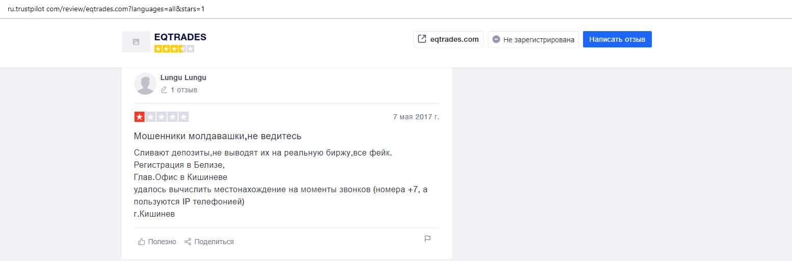 В том случае если бесстыжие махинаторы EQTRADES Вас развели или попытались это сделать, то тогда сообщите адрес электронного ящика чуть далее, и мы без сомнения с Вами свяжемся по электронной почте.