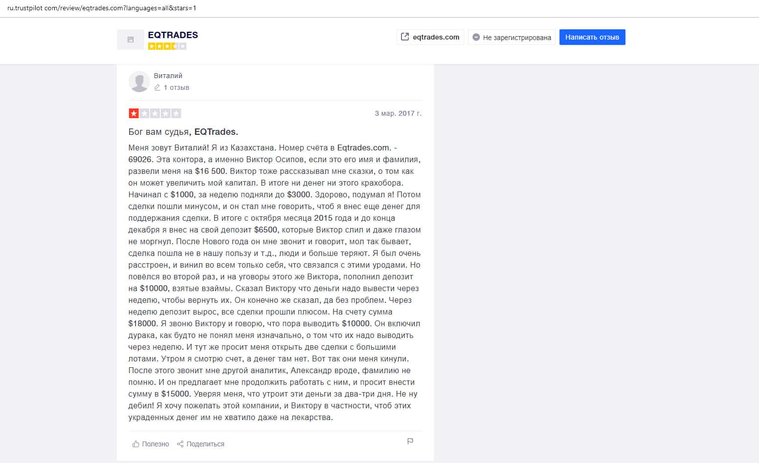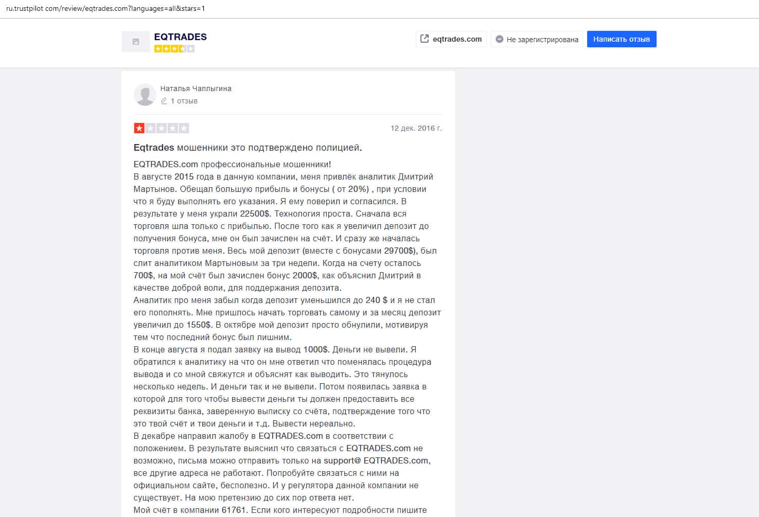 - EQTRADES своровала у Alex 70 тысяч долларов и исчезла