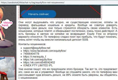 Equity Flow - очередные мошенники сети интернет, которые занимаются разводом наивных пользователей сети на деньги под предлогом торговли форекс и CFD, в ходе которых жулики Кьюти Флов сливают клиентам счет. В связи с этим связываться с лохотроном Equity Flow мы определенно не рекомендуем !!!