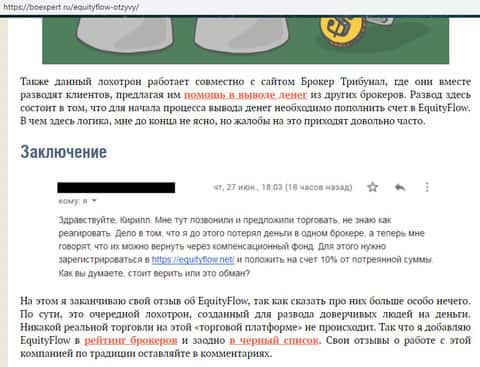 - Автор вышеизложенного материала об аферистах Equity Flow