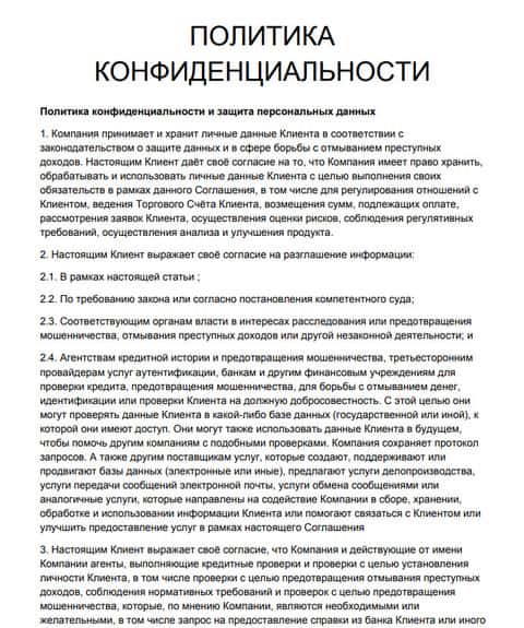 Условия сотрудничества у мошенников Equity Flow начинаются с общей информации, а так же с того, что лохотрон Екьюти Флов должен получить личную и персональную информацию клиента при регистрации. На изображении, расположенном ниже, вы можете увидеть начало политики конфиденциальности лохотрона Equity Flow.