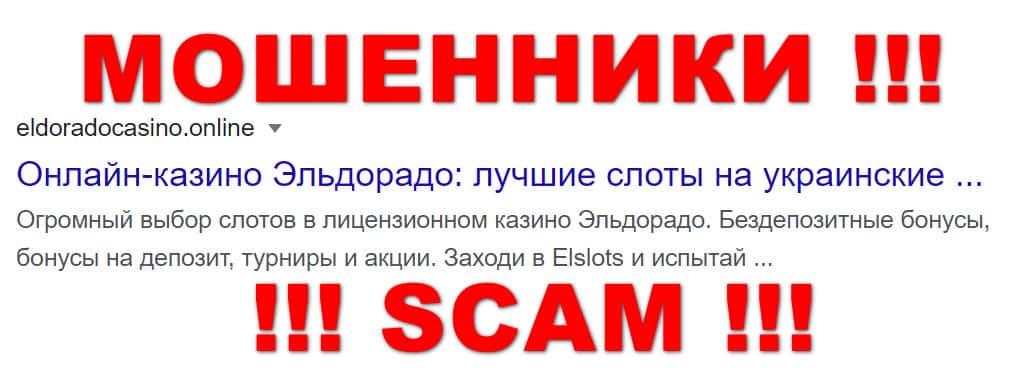 Согласно данным сайта лохотрона Эльдорадо Казино, мошенники принадлежат группе Elslots com, которая якобы является официальным казино в интернете.