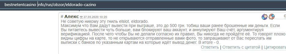 - Не вывод средств с псевдо-казино EldoradoCasino