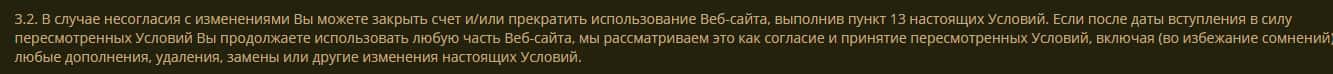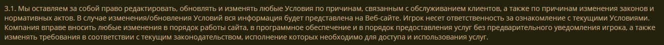 В клиентском соглашении контора EldoradoCasino указывает, что они оставляют за собой право изменять и редактировать данный документ, при этом не предупреждая клиентов.
