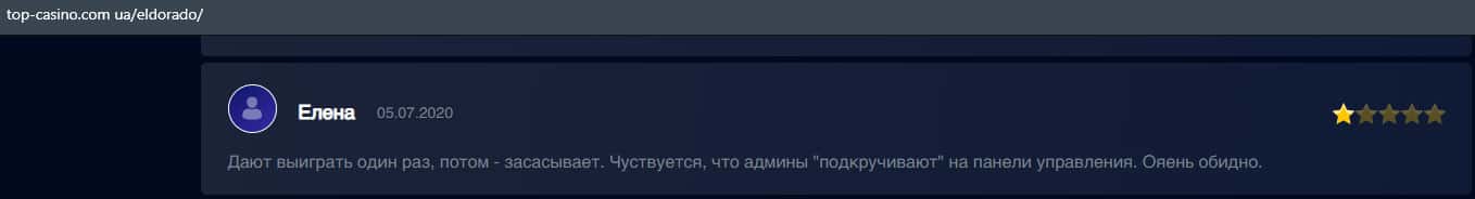 Далее представлен отзыв от человека, который на себе проверил, что мошенническая контора Эльдорадо Казино манипулирует софтом и сливает клиентов.