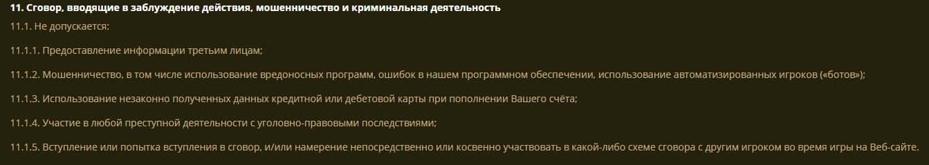 Лохотрон Эльдорадо Казино имеет право обвинить клиента в сговоре и прочих мошеннических действиях с помощью которых ему удалось выиграть деньги у казино.