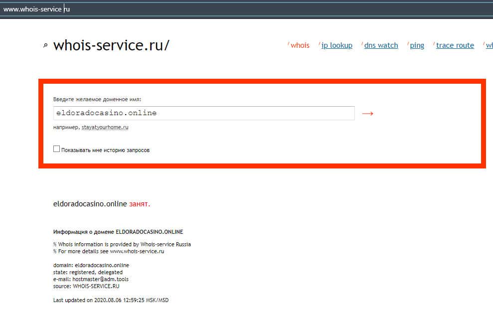 На специальном сайте мы решили проверить, сколько же реально дней домену лохотрона eldoradocasino online. Как оказалось ему чуть больше пару лет.