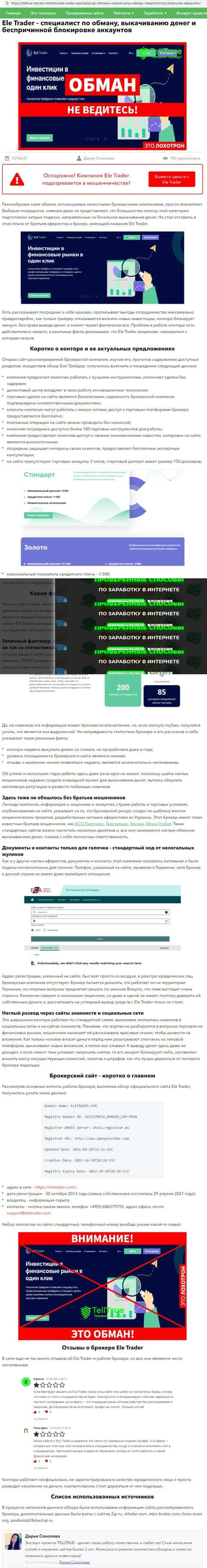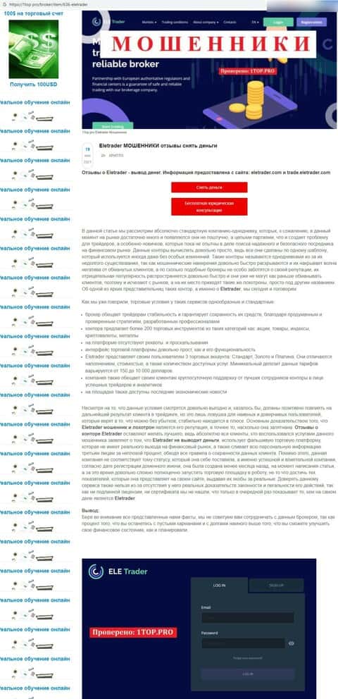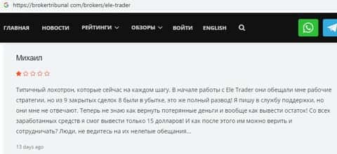 Обзоры, разоблачающие иллюзорного валютного брокера ЕЛЕ Трейдер, найденные в интернете
